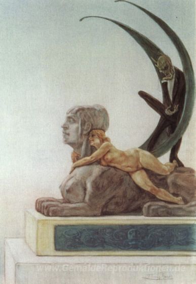 Wir bieten Ihnen eine handgefertigte Reproduktion auf Leinwand des berühmten Kunstwerks 'Die Sphinx' von Felicien Rops, aus dem Reproduktionsmuseum.