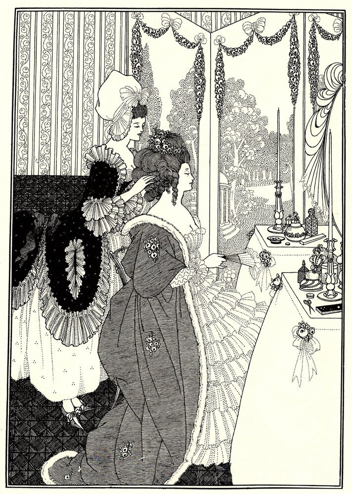 Wir bieten Ihnen eine handgefertigte Reproduktion auf Leinwand des berühmten Kunstwerks 'Die Toilette' von Aubrey Beardsley, aus dem Reproduktionsmuseum.