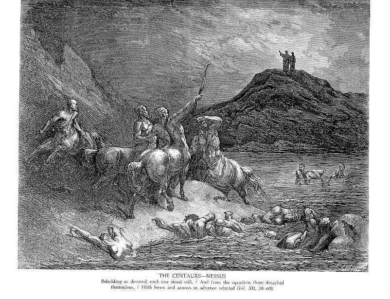 Wir bieten Ihnen eine handgefertigte Reproduktion auf Leinwand des berühmten Kunstwerks 'Die Zentauren - Nessus' von Gustave Dore, aus dem Reproduktionsmuseum.
