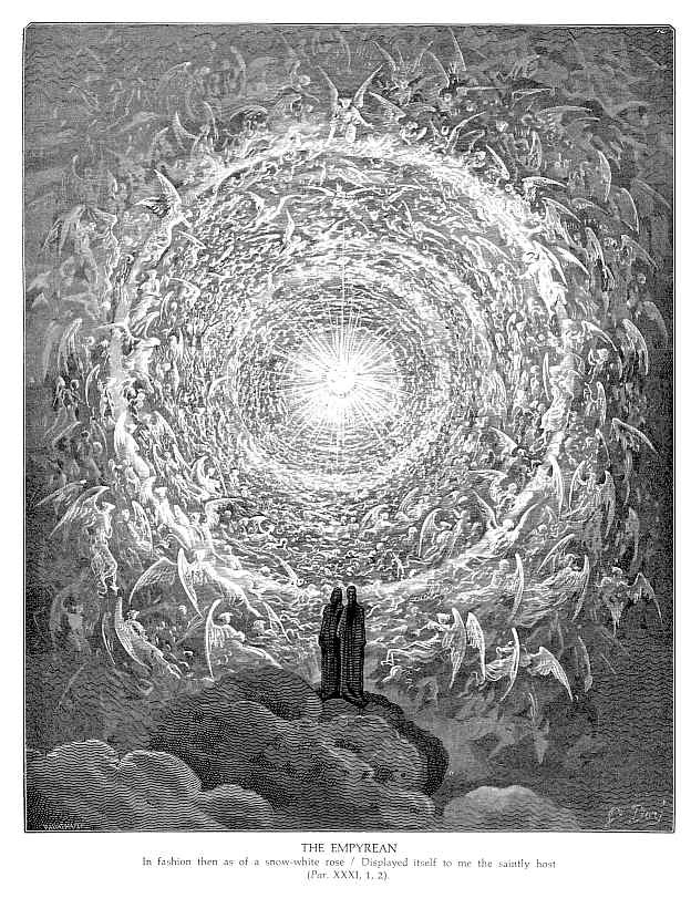 Wir bieten Ihnen eine handgefertigte Reproduktion auf Leinwand des berühmten Kunstwerks 'Empyrean' von Gustave Dore, aus dem Reproduktionsmuseum.