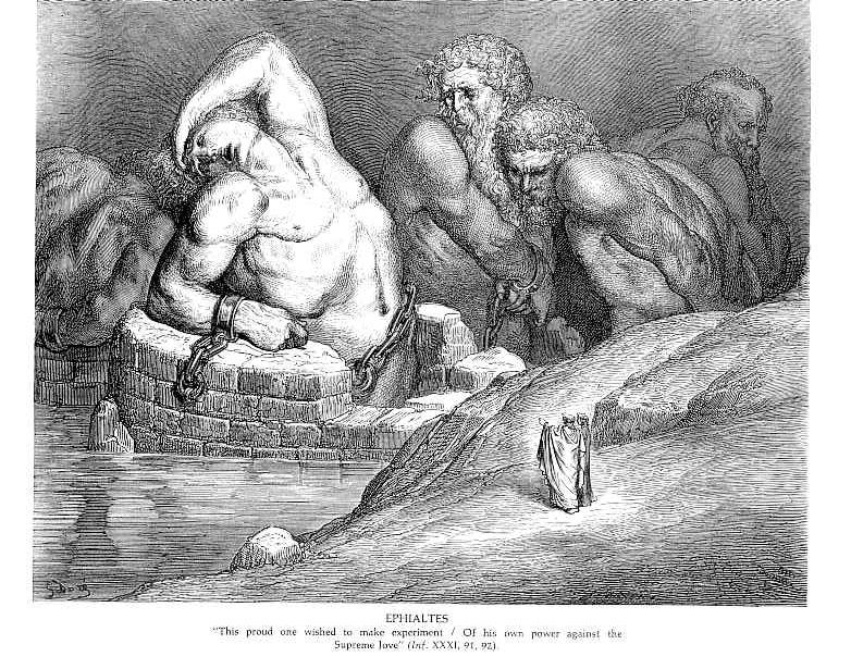 Wir bieten Ihnen eine handgefertigte Reproduktion auf Leinwand des berühmten Kunstwerks 'Ephialtes' von Gustave Dore, aus dem Reproduktionsmuseum.