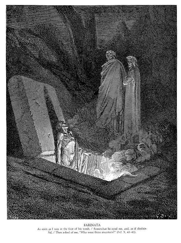 Wir bieten Ihnen eine handgefertigte Reproduktion auf Leinwand des berühmten Kunstwerks 'Farinata' von Gustave Dore, aus dem Reproduktionsmuseum.