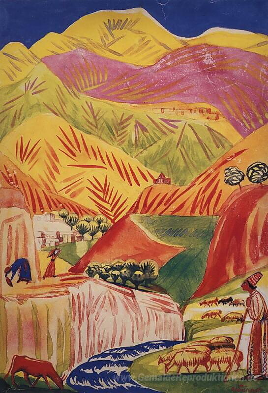 Wir bieten Ihnen eine handgefertigte Reproduktion auf Leinwand des berühmten Kunstwerks 'Flamboyant Landschaft' von Martiros Saryan, aus dem Reproduktionsmuseum.