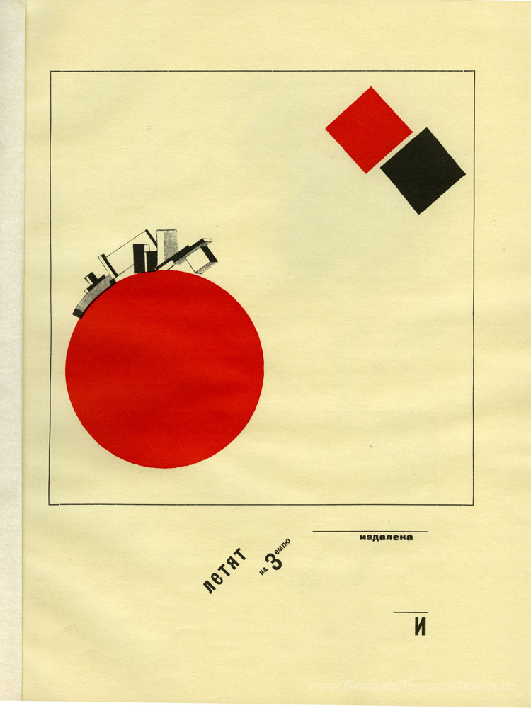 Wir bieten Ihnen eine handgefertigte Reproduktion auf Leinwand des berühmten Kunstwerks 'Fliegen auf die Erde aus der Ferne' von El Lissitzky, aus dem Reproduktionsmuseum.