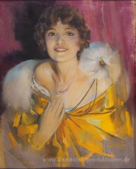Wir bieten Ihnen eine handgefertigte Reproduktion auf Leinwand des berühmten Kunstwerks 'Frau berühren Perlen' von Rolf Amstrong, aus dem Reproduktionsmuseum.