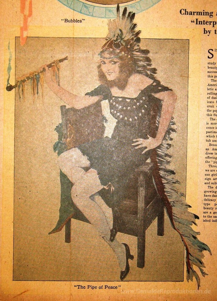 Wir bieten Ihnen eine handgefertigte Reproduktion auf Leinwand des berühmten Kunstwerks 'Friedenspfeife, Hearst Sonntags amerikanischen' von Raphael Kirchner, aus dem Reproduktionsmuseum.