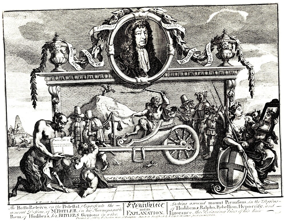 Wir bieten Ihnen eine handgefertigte Reproduktion auf Leinwand des berühmten Kunstwerks 'Frontispiz und seine Erklärung (Hurdibras)' von William Hogarth, aus dem Reproduktionsmuseum.