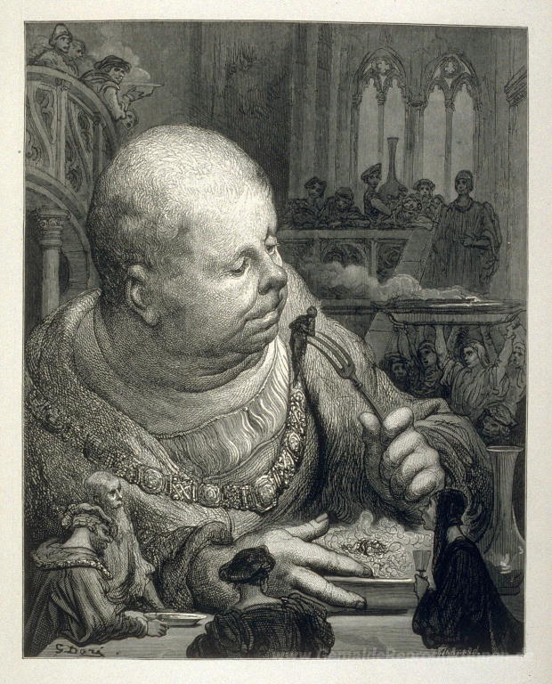 Wir bieten Ihnen eine handgefertigte Reproduktion auf Leinwand des berühmten Kunstwerks 'Gargantua' von Gustave Dore, aus dem Reproduktionsmuseum.