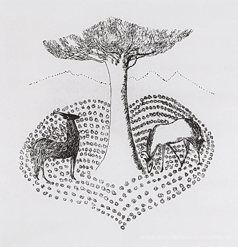 Wir bieten Ihnen eine handgefertigte Reproduktion auf Leinwand des berühmten Kunstwerks 'Gazelles der Nähe des Baumes' von Martiros Saryan, aus dem Reproduktionsmuseum.