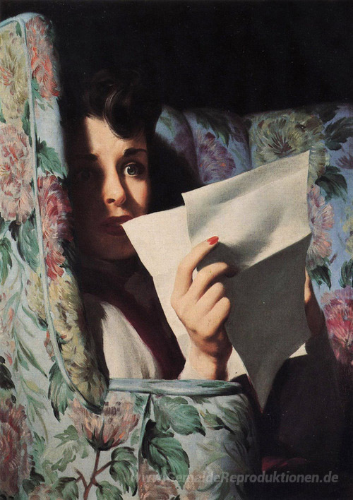 Wir bieten Ihnen eine handgefertigte Reproduktion auf Leinwand des berühmten Kunstwerks 'Good Housekeeping Illustration' von Robert G. Harris, aus dem Reproduktionsmuseum.