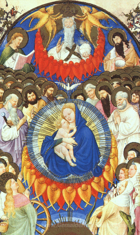 Wir bieten Ihnen eine handgefertigte Reproduktion auf Leinwand des berühmten Kunstwerks 'Himmlischen Heerscharen' von Limbourg brothers, aus dem Reproduktionsmuseum.