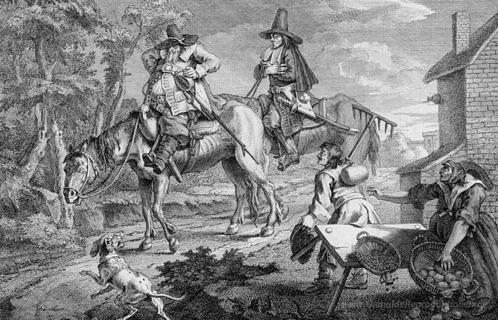Wir bieten Ihnen eine handgefertigte Reproduktion auf Leinwand des berühmten Kunstwerks 'Hudibras' von William Hogarth, aus dem Reproduktionsmuseum.