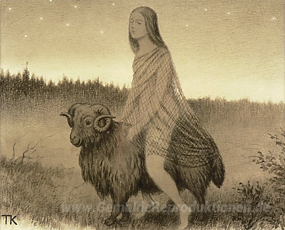 Wir bieten Ihnen eine handgefertigte Reproduktion auf Leinwand des berühmten Kunstwerks 'Ikke Kjoerende Og ikke Ridende' von Theodor Severin Kittelsen, aus dem Reproduktionsmuseum.