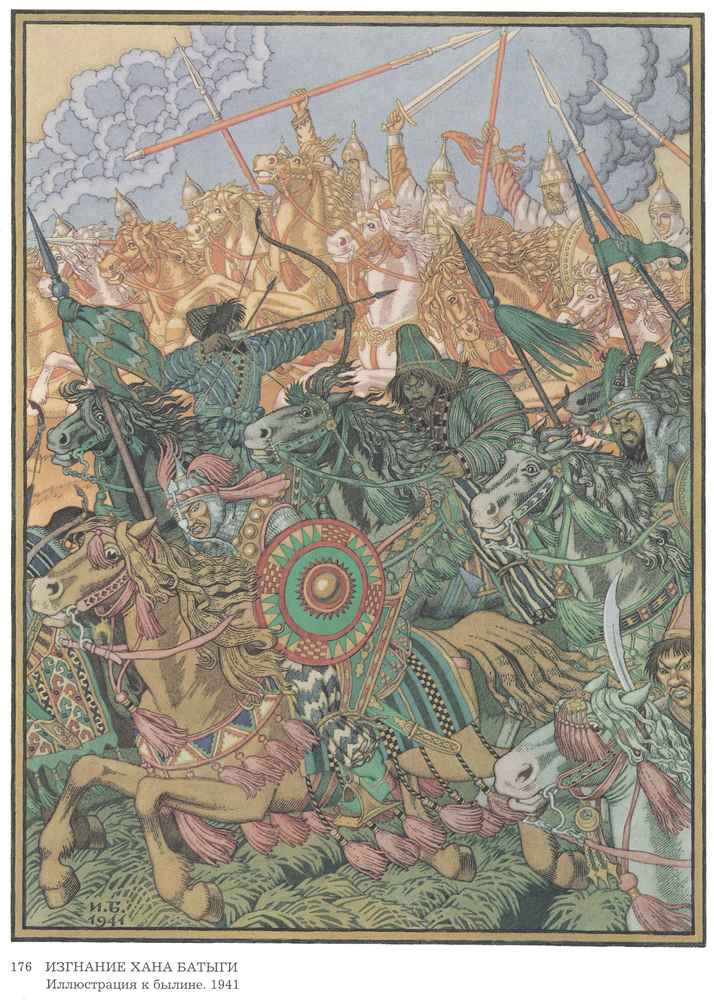 Wir bieten Ihnen eine handgefertigte Reproduktion auf Leinwand des berühmten Kunstwerks 'Illustration für das Epos "Exile Khan Batygi"' von Ivan Bilibin, aus dem Reproduktionsmuseum.