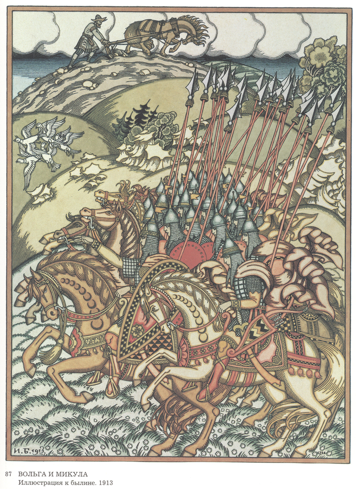 Wir bieten Ihnen eine handgefertigte Reproduktion auf Leinwand des berühmten Kunstwerks 'Illustration für das Epos "Wolga und Mikula"' von Ivan Bilibin, aus dem Reproduktionsmuseum.