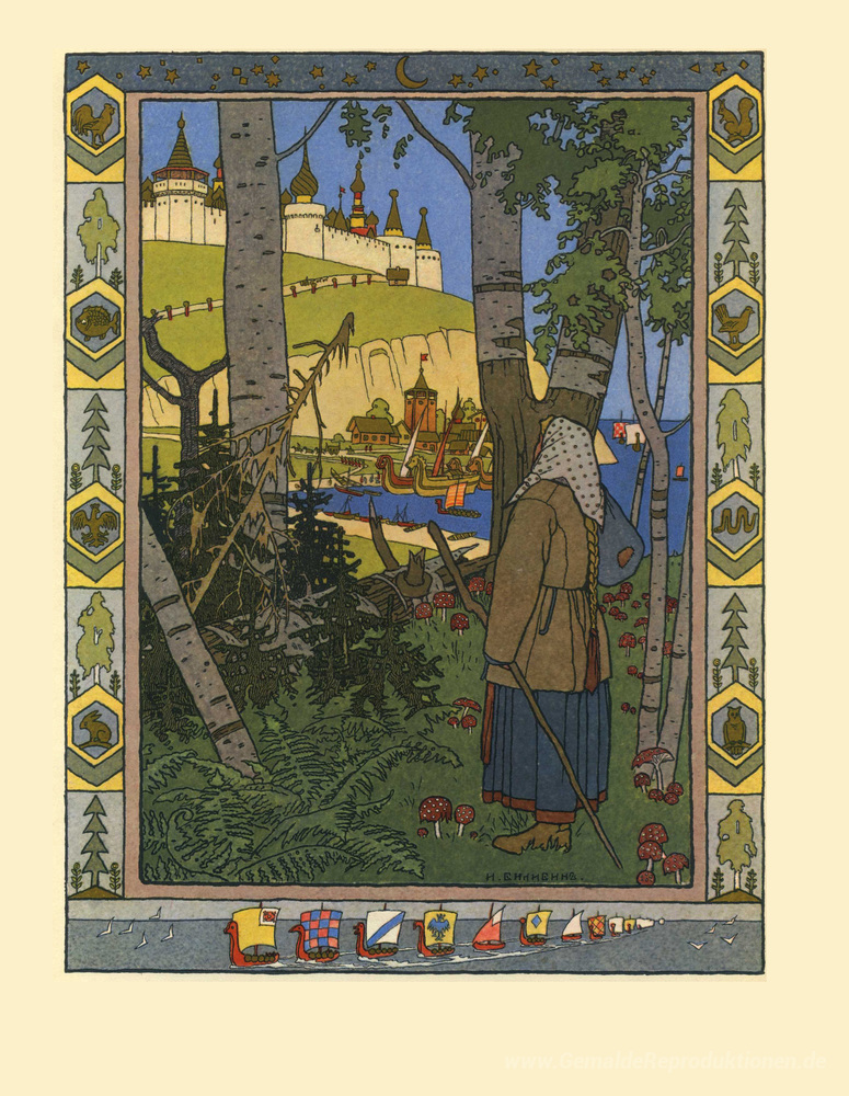 Entdecken Sie die faszinierende Welt der Ölgemälde mit unseren handverlesenen Kunstwerken, die nicht nur Räume verschönern, sondern auch Geschichten erzählen. Jedes Gemälde ist das Ergebnis leidenschaftlicher Handwerkskunst, die bereits viele Generationen begeistert. Unsere exklusive Auswahl umfasst Werke von renommierten Künstlern wie Ivan Bilibin, dessen Meisterwerk “Illustration für den russischen Fairy Story 'Feather Of Fin'” nicht nur durch seine lebendige Farbpalette besticht, sondern auch durch den einzigartigen Stil des Künstlers, der russische Märchen in prächtigen Bildnissen zum Leben erweckt.