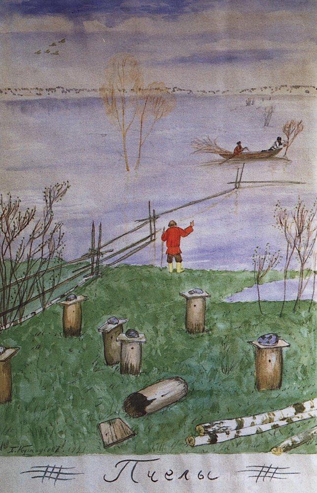 Wir bieten Ihnen eine handgefertigte Reproduktion auf Leinwand des berühmten Kunstwerks 'Illustration für Nikolay Nekrasov Gedicht "Bienen"' von Boris Kustodiev, aus dem Reproduktionsmuseum.