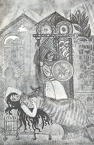 Wir bieten Ihnen eine handgefertigte Reproduktion auf Leinwand des berühmten Kunstwerks 'Illustration zu "armenischen Volksmärchen"' von Martiros Saryan, aus dem Reproduktionsmuseum.