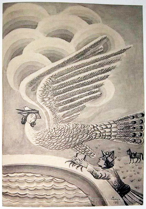 Wir bieten Ihnen eine handgefertigte Reproduktion auf Leinwand des berühmten Kunstwerks 'Illustration zu "armenischen Volksmärchen"' von Martiros Saryan, aus dem Reproduktionsmuseum.