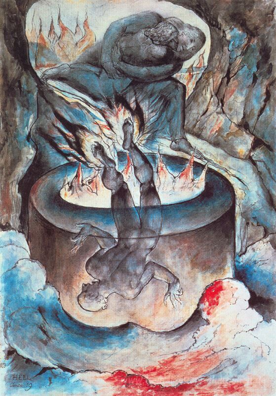 Wir bieten Ihnen eine handgefertigte Reproduktion auf Leinwand des berühmten Kunstwerks 'Illustration zu Dantes Göttlicher Komödie, Hölle' von William Blake, aus dem Reproduktionsmuseum.