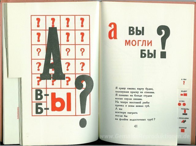Wir bieten Ihnen eine handgefertigte Reproduktion auf Leinwand des berühmten Kunstwerks 'Illustration zu "Für die Stimme" von Wladimir Majakowski' von El Lissitzky, aus dem Reproduktionsmuseum.