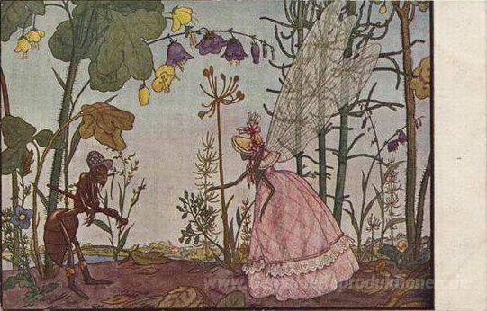 Wir bieten Ihnen eine handgefertigte Reproduktion auf Leinwand des berühmten Kunstwerks 'Illustration zu Ivan Krylov Fabel "The Ant und der Dragonfly '' von Heorhiy Narbut, aus dem Reproduktionsmuseum.