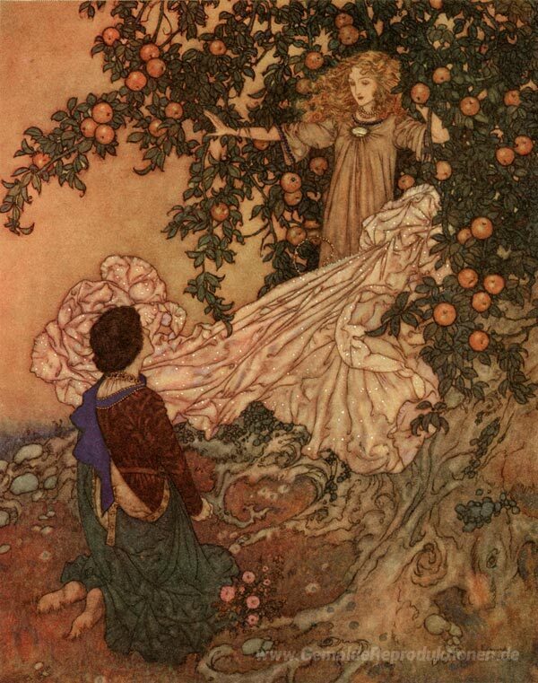 Wir bieten Ihnen eine handgefertigte Reproduktion auf Leinwand des berühmten Kunstwerks 'In ihren Tiefen verborgen (aus dem Garten des Paradieses)' von Edmund Dulac, aus dem Reproduktionsmuseum.