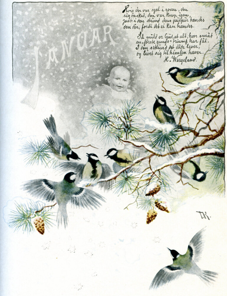 Wir bieten Ihnen eine handgefertigte Reproduktion auf Leinwand des berühmten Kunstwerks 'Januar' von Theodor Severin Kittelsen, aus dem Reproduktionsmuseum.