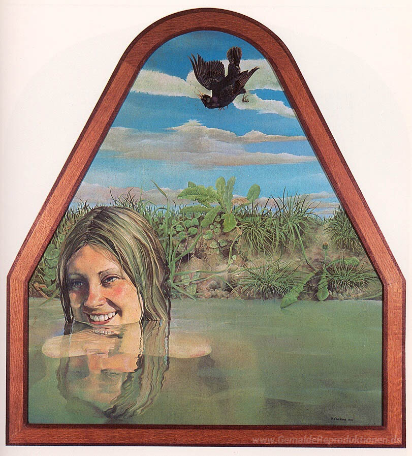 Wir bieten Ihnen eine handgefertigte Reproduktion auf Leinwand des berühmten Kunstwerks 'Juliet' von Kit Williams, aus dem Reproduktionsmuseum.