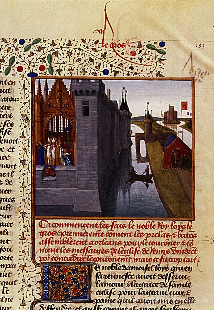 Wir bieten Ihnen eine handgefertigte Reproduktion auf Leinwand des berühmten Kunstwerks 'Krönung von Louis VI' von Jean Fouquet, aus dem Reproduktionsmuseum.