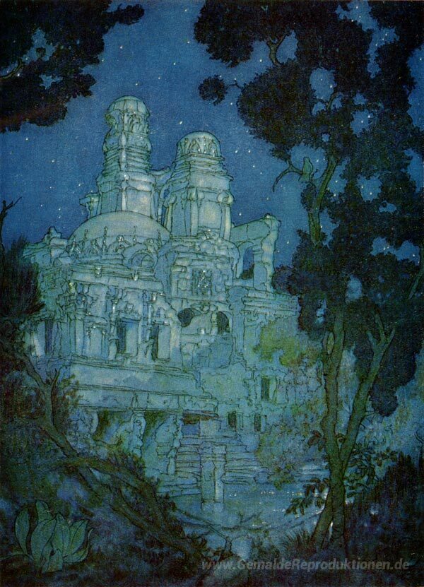 Wir bieten Ihnen eine handgefertigte Reproduktion auf Leinwand des berühmten Kunstwerks 'Lone Dove, Das Rubaiyat von Omar Khayyam' von Edmund Dulac, aus dem Reproduktionsmuseum.