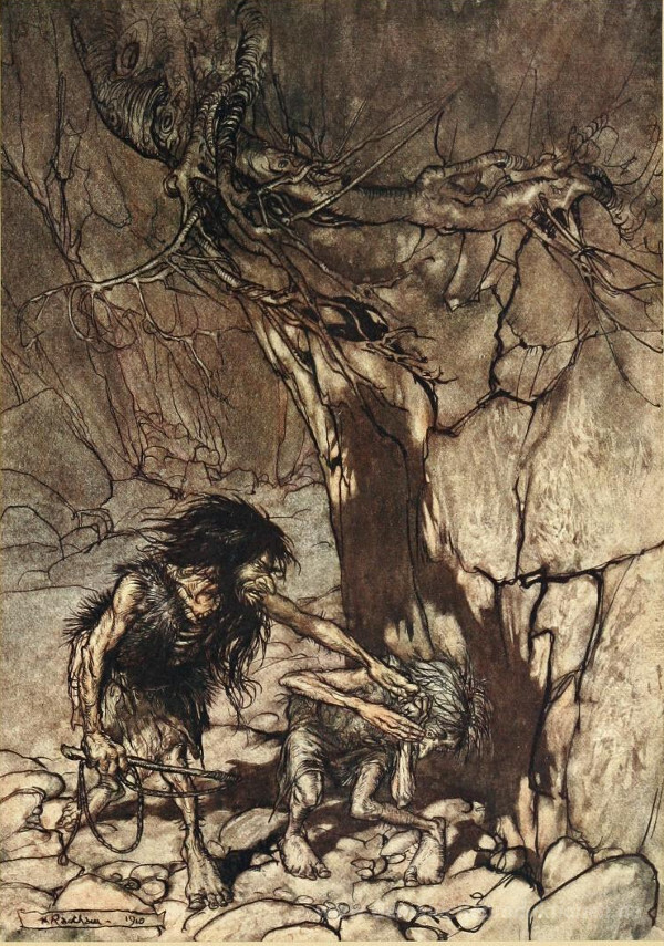 Willkommen in der faszinierenden Welt der Ölgemälde, wo Kunstwerke nicht nur Wände schmücken, sondern auch Emotionen wecken. Unser herausragendes Gemälde Mime, heulend. Ohé! Ohé! des talentierten Künstlers Arthur Rackham lädt Sie ein, eine Geschichte durch Farbe und Form zu erleben. Rackham, bekannt für seine einzigartigen Illustrationen und seine meisterhafte Beherrschung der Ölfarben, verbindet in diesem Werk Fantasie mit tiefen menschlichen Emotionen.