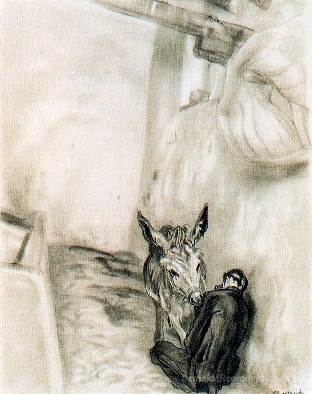 Wir bieten Ihnen eine handgefertigte Reproduktion auf Leinwand des berühmten Kunstwerks 'Platero. Die Lulling Schlaf Bruder.' von Carlos Saenz de Tejada, aus dem Reproduktionsmuseum.