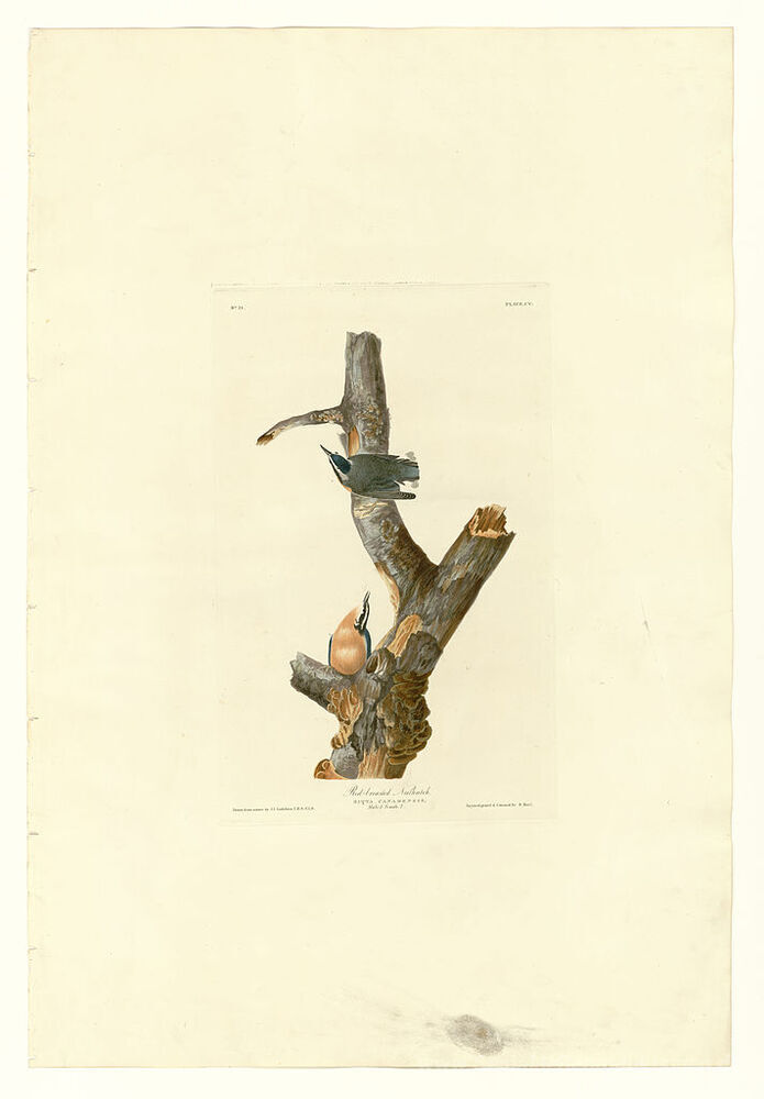 Wir bieten Ihnen eine handgefertigte Reproduktion auf Leinwand des berühmten Kunstwerks 'Platte 105 Kanadakleiber' von John James Audubon, aus dem Reproduktionsmuseum.
