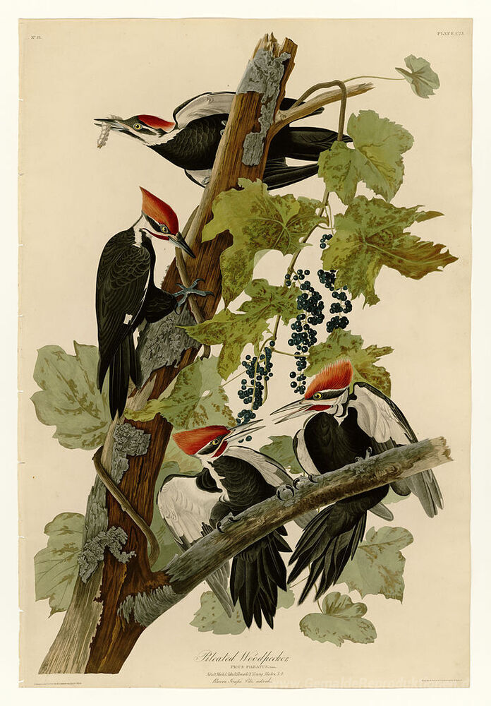 Wir bieten Ihnen eine handgefertigte Reproduktion auf Leinwand des berühmten Kunstwerks 'Platte 111 Helmspecht' von John James Audubon, aus dem Reproduktionsmuseum.
