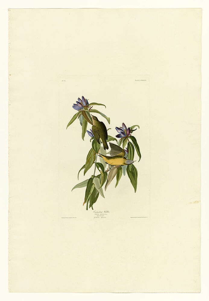 Wir bieten Ihnen eine handgefertigte Reproduktion auf Leinwand des berühmten Kunstwerks 'Platte 138 Connecticut Warbler' von John James Audubon, aus dem Reproduktionsmuseum.