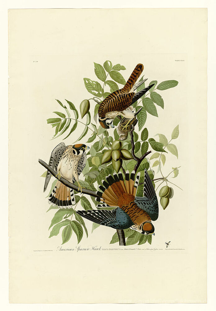 Wir bieten Ihnen eine handgefertigte Reproduktion auf Leinwand des berühmten Kunstwerks 'Platte 142 amerikanischen Sparrow Hawk' von John James Audubon, aus dem Reproduktionsmuseum.