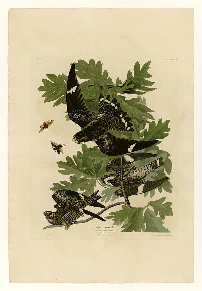 Wir bieten Ihnen eine handgefertigte Reproduktion auf Leinwand des berühmten Kunstwerks 'Platte 147 Night Hawk' von John James Audubon, aus dem Reproduktionsmuseum.