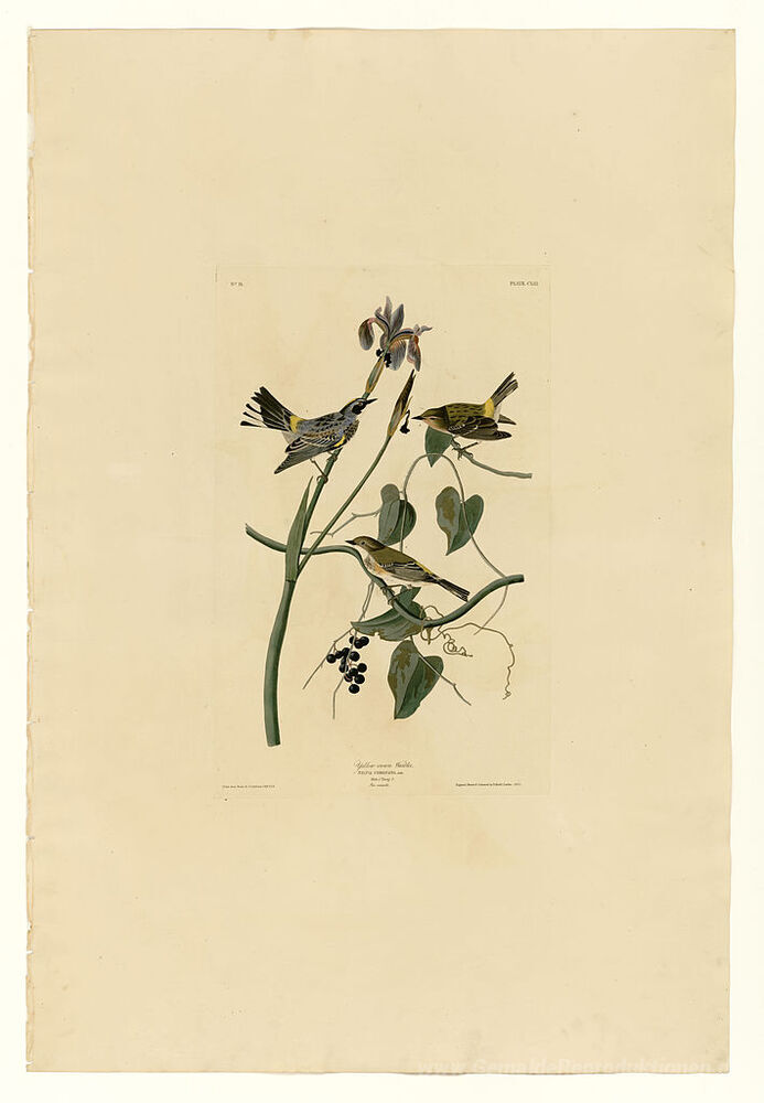 Wir bieten Ihnen eine handgefertigte Reproduktion auf Leinwand des berühmten Kunstwerks 'Platte 153 Yellow-Krone Warbler' von John James Audubon, aus dem Reproduktionsmuseum.
