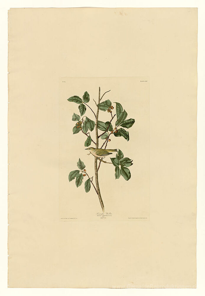 Wir bieten Ihnen eine handgefertigte Reproduktion auf Leinwand des berühmten Kunstwerks 'Platte 154 Tennessee Warbler' von John James Audubon, aus dem Reproduktionsmuseum.