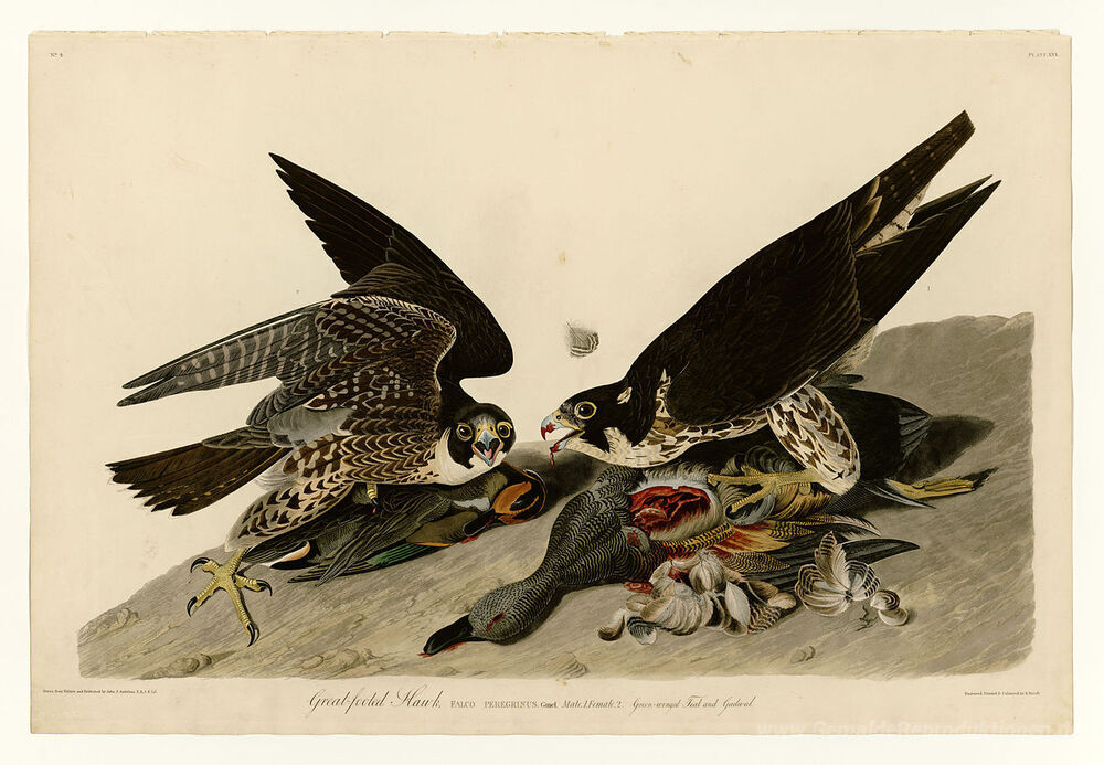 Wir bieten Ihnen eine handgefertigte Reproduktion auf Leinwand des berühmten Kunstwerks 'Platte 16 Großtritt Hawk' von John James Audubon, aus dem Reproduktionsmuseum.