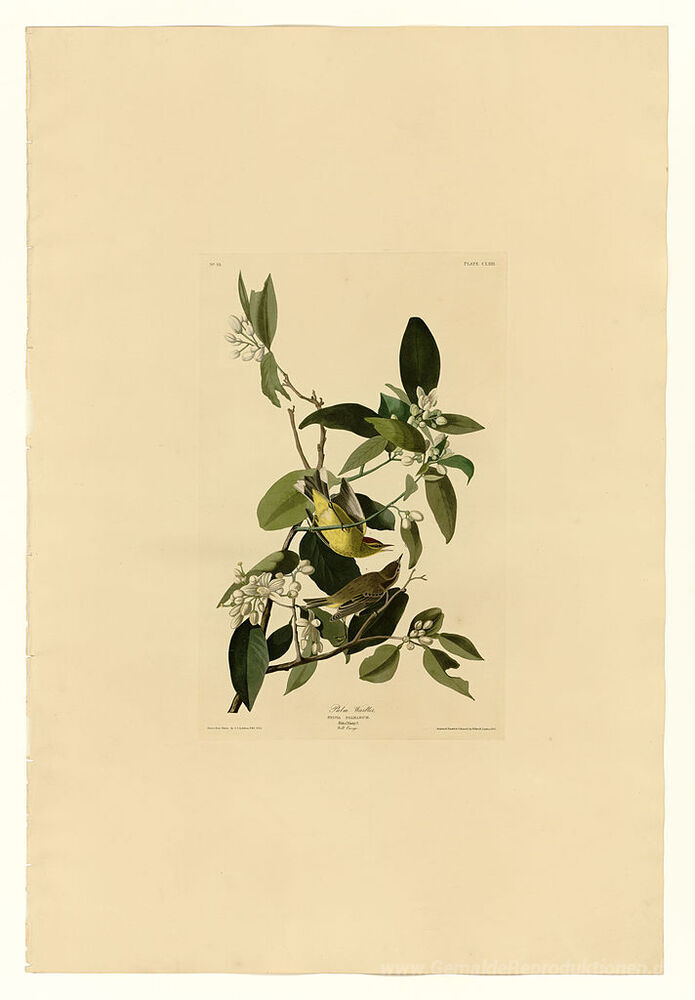 Wir bieten Ihnen eine handgefertigte Reproduktion auf Leinwand des berühmten Kunstwerks 'Platte 163 Palm Warbler' von John James Audubon, aus dem Reproduktionsmuseum.