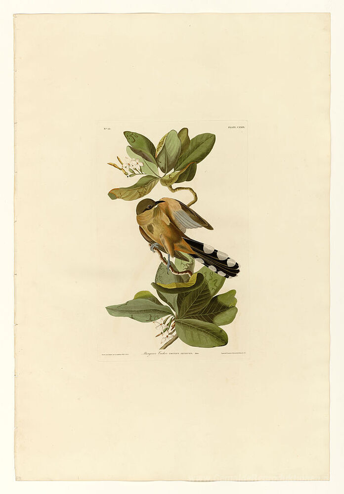 Wir bieten Ihnen eine handgefertigte Reproduktion auf Leinwand des berühmten Kunstwerks 'Platte 169 Mangrove Cuckoo' von John James Audubon, aus dem Reproduktionsmuseum.