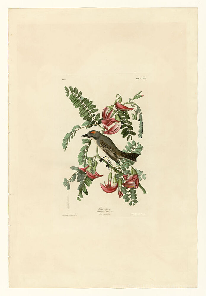 Wir bieten Ihnen eine handgefertigte Reproduktion auf Leinwand des berühmten Kunstwerks 'Platte 170 Grau Tyrant' von John James Audubon, aus dem Reproduktionsmuseum.