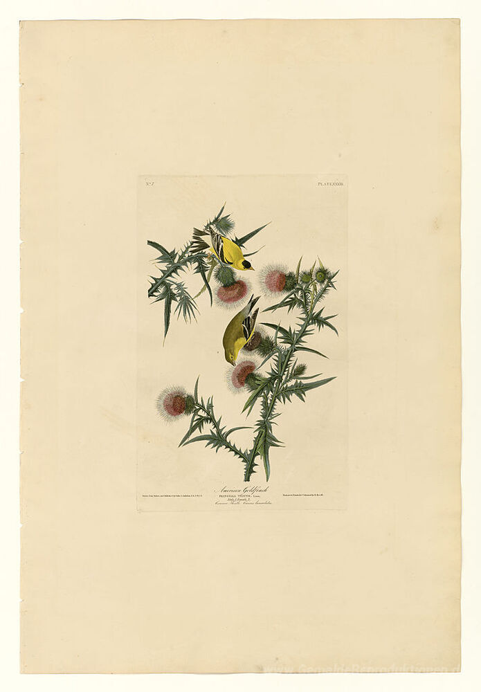 Wir bieten Ihnen eine handgefertigte Reproduktion auf Leinwand des berühmten Kunstwerks 'Platte 33 American Goldfinch' von John James Audubon, aus dem Reproduktionsmuseum.