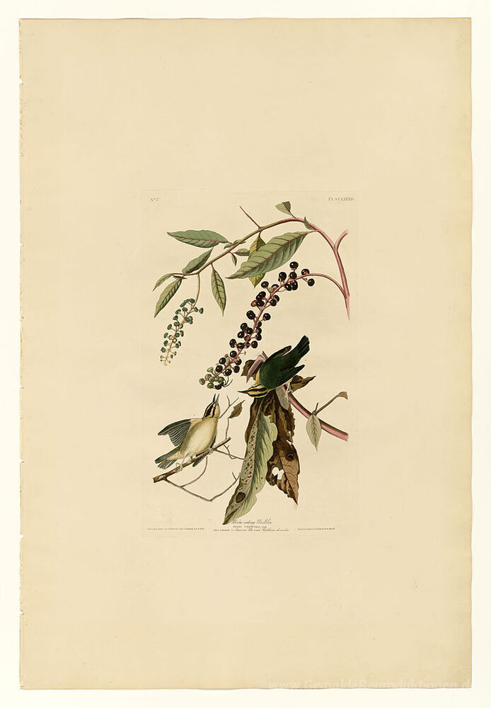 Wir bieten Ihnen eine handgefertigte Reproduktion auf Leinwand des berühmten Kunstwerks 'Platte 34 Worm Essen Warbler' von John James Audubon, aus dem Reproduktionsmuseum.