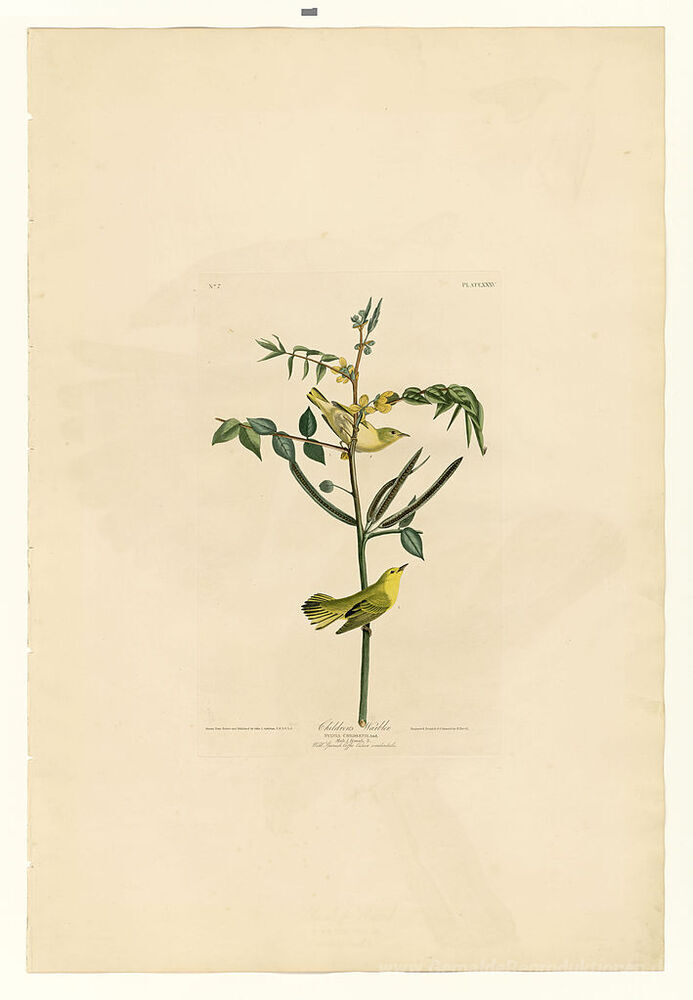 Wir bieten Ihnen eine handgefertigte Reproduktion auf Leinwand des berühmten Kunstwerks 'Platte 35 Kinder Warbler' von John James Audubon, aus dem Reproduktionsmuseum.