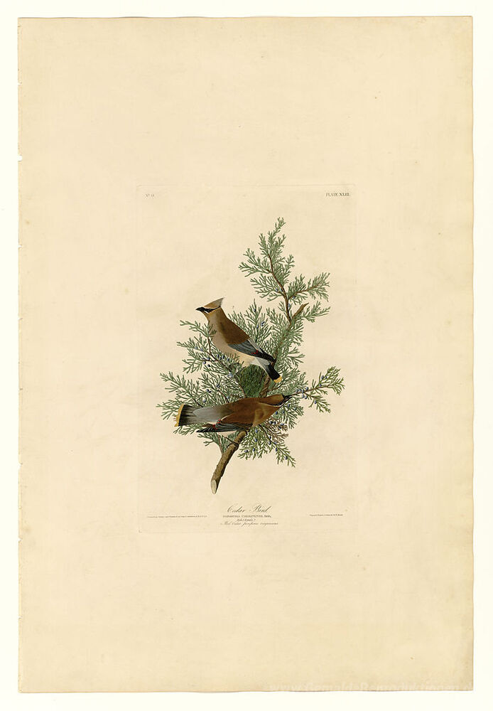 Wir bieten Ihnen eine handgefertigte Reproduktion auf Leinwand des berühmten Kunstwerks 'Platte 43 Cedar Vogel' von John James Audubon, aus dem Reproduktionsmuseum.