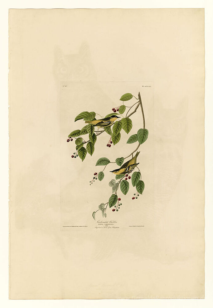 Wir bieten Ihnen eine handgefertigte Reproduktion auf Leinwand des berühmten Kunstwerks 'Platte 60 Sprudel Warbler' von John James Audubon, aus dem Reproduktionsmuseum.