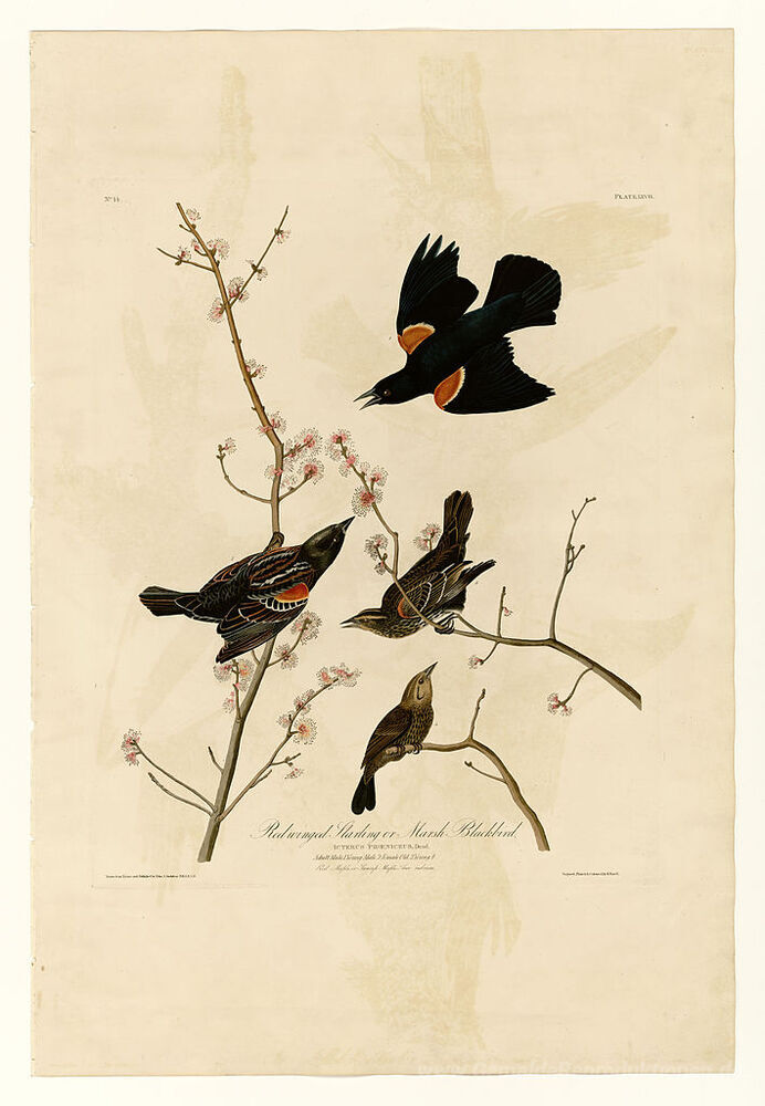 Wir bieten Ihnen eine handgefertigte Reproduktion auf Leinwand des berühmten Kunstwerks 'Platte 67 Red-winged Starling oder Marsh Blackbird' von John James Audubon, aus dem Reproduktionsmuseum.